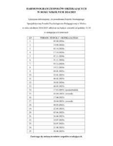 harmonogram zespołów orzekających w roku szkolnym 2024_25