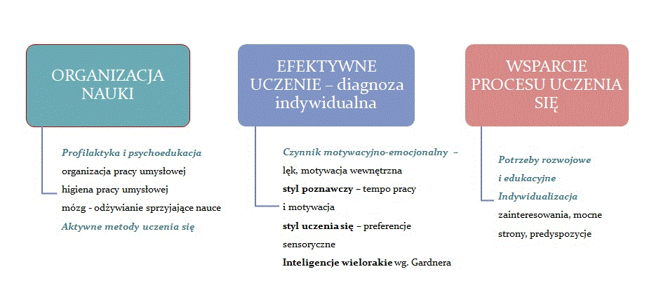 • diagnoza stylów uczenia się oraz inteligencji wielorakich.